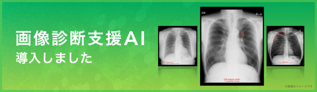 このAIはあくまで医師を「支援」するものであり、最終的な診断や治療方針の決定は医師が行います。当院では胸部レントゲンのAI診断を導入し、人間の目だけでは見逃してしまう可能性のある小さな病変もAIが指摘することで、より正確な診断につながるよう精度を高めていきます。